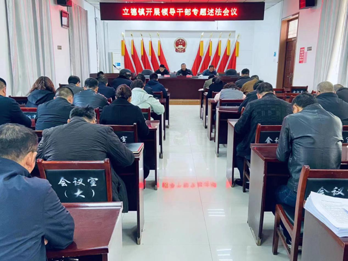 立德镇召开由党委书记主持的党政领导干部专题述法会议,立德镇党政班子成员、站所负责人、村书记参加会议。镇政法委员、一名站所负责人、两名村书记代表等4位同志结合自身实际工作进行述法,全体参会人员填写了述法评议表。