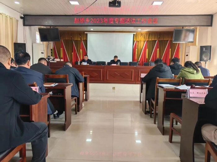 2024年3月20日,赵桥乡召开2023年度专题述法工作会议。乡班子成员、站所负责人、村“两委”负责人代表等三人进行现场专题述法,其他人员做了书面述法,会议对述法情况进行评议。