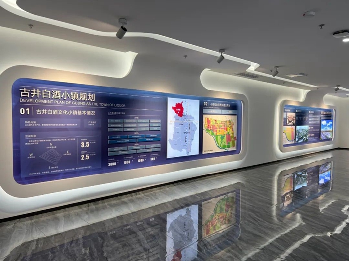 古井白酒特色小镇会客厅,位于古井镇白酒产业园,总占地50亩,建筑面积4609.4平方米,绿地率35%。已于2022年11月底投入使用,展示内容包括序厅历史篇、文化篇、酿造篇、规划篇和产业篇五大篇章,全力打造集白酒文化、宣传展示、招商服务、线上线下销售为一体的公共服务平台。目前,古井镇白酒产业园已投资30亿元用于基础建设道路、路灯、绿化、给排水、电力、雨污分离等全部建成。全年通过招商引资新上白酒企业五谷醇、德丰等六家,投资额5亿元。