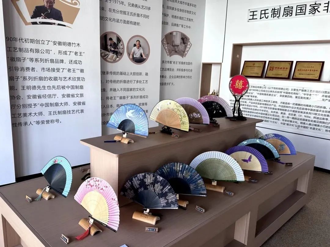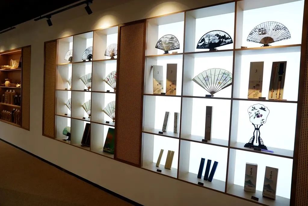 在王氏制扇国家非遗展示厅,各式各样的扇子陈列其中,轻摇一扇,仿佛穿越回宋词里的江南水乡,讲述着当年甘溪村的美好光阴。