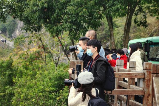 媒体记者拍摄万峰林美景 图摄/王晓
